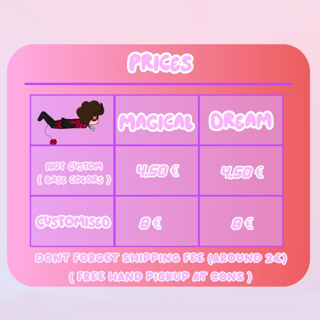 Soit vous optez pour les couleurs de base et vous choisisez entre un Magical Charm de Ladybug ou un Dream Charm de Coccidream, avec leurs couleurs de base.