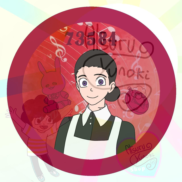 En plus de sa montre radar , j'ajoute au fond du badge une petite reférence a mon histoire dans TPN , le dessin qu'Atsuru a fait a Isabella etant petit